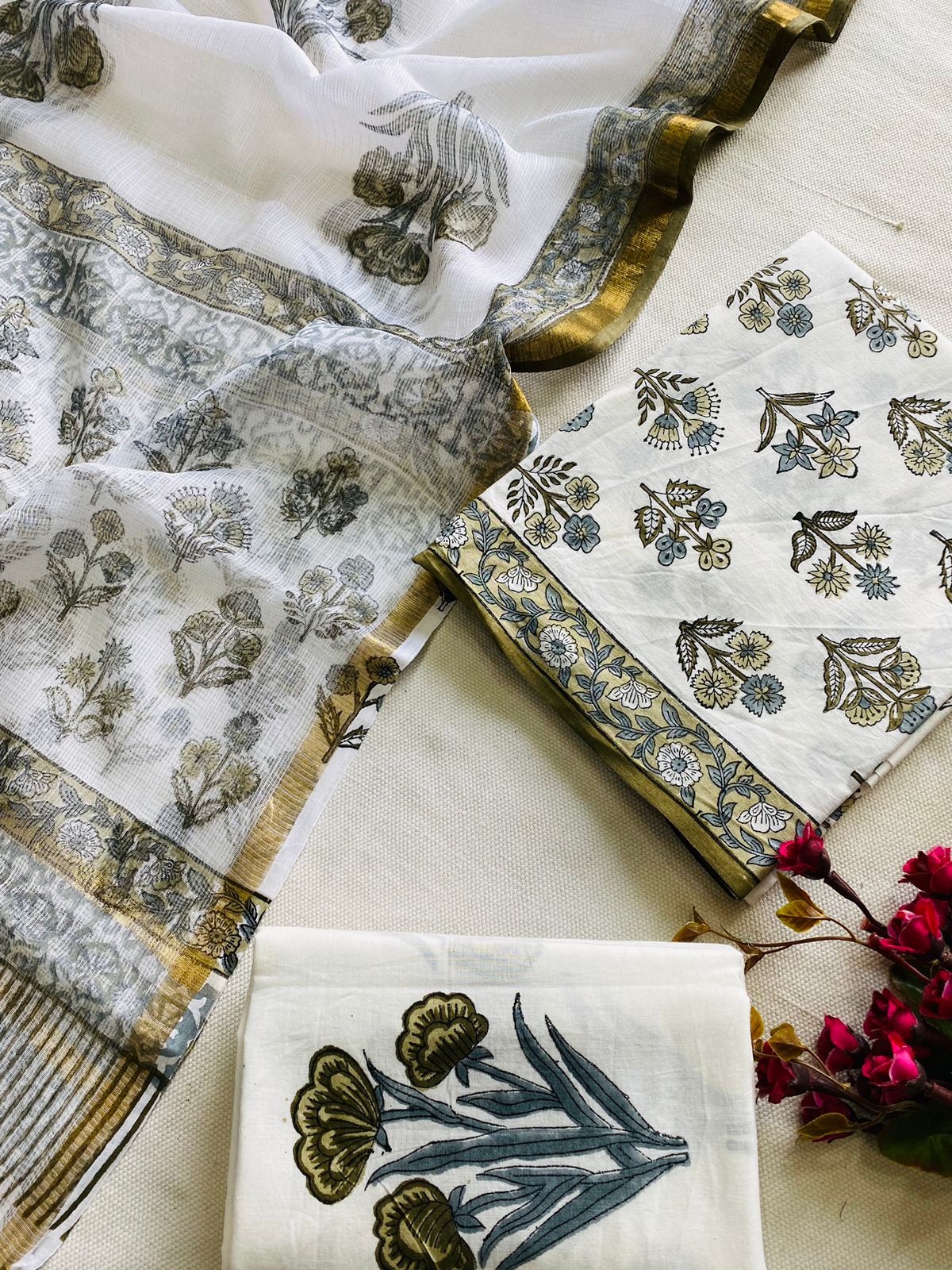 Aavya Pure Cotton Handblock Suit Set with Kota Doria Dupatta