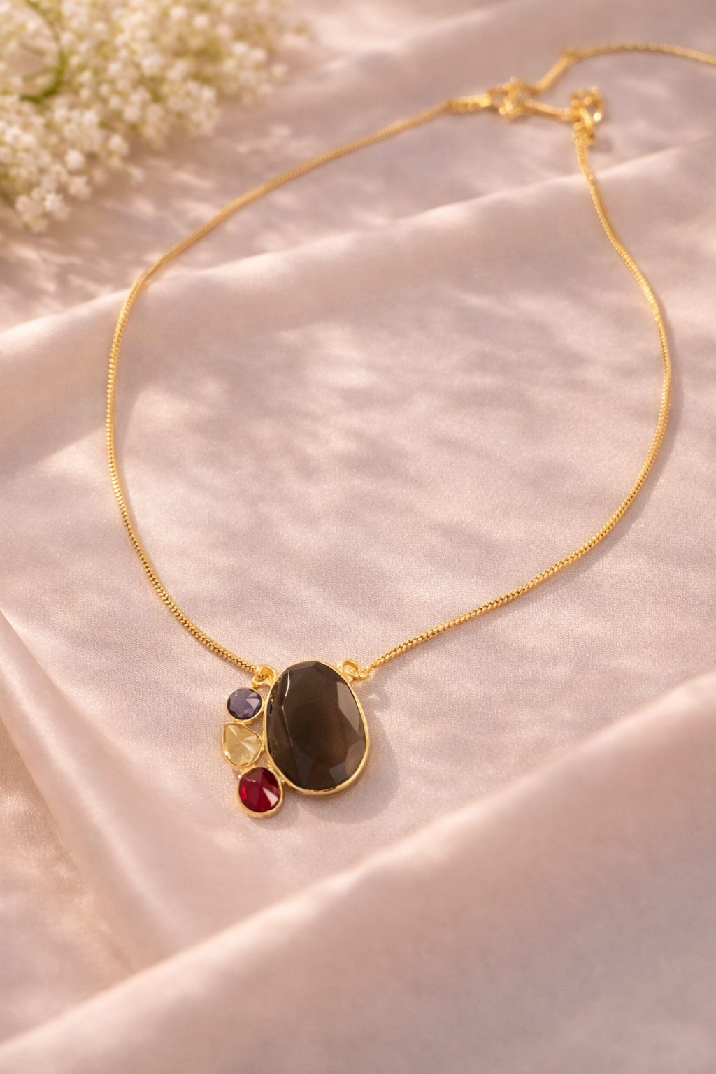 Mora Mora Luxe Multistone Pendant Necklace is designed to bring effortless elegance to your everyday style. Featuring a beautiful arrangement of multicolor stones paired with a bold central gemstone, this necklace offers a perfect balance of minimal design and statement appeal.